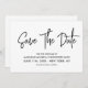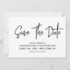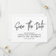 Modern calligraphy save the date in white with a digital scannable QR code for a website or contact information on the back.