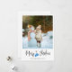Modern Calligraphy Blue Mittens Photo Flat Holiday Card