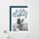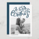 Modern Calligraphy Blue Photo Merry Christmas Holiday Card