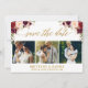 Modern Calligraphy, Watercolor Burgundy Floral, 3 Photo Engagement Announcement Save The Date Gold Card