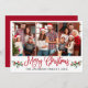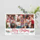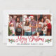Modern Fun Calligraphy Script 3 Photo Family Photo Collage Merry Christmas Card includes Watercolor Christmas Holly Berries - Red Script