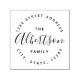 Custom-designed circular self-inking return address stamp featuring personalised family name in modern hand calligraphy. Perfect for announcements, holiday cards, invitations, and more!