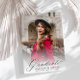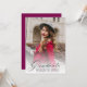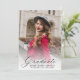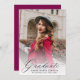 Calligraphy lettering design and a custom photo. This graduation card design has announcement at the front and graduation party invitation at the back. You can change the photo and other details.