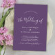 Minimalist Modern Calligraphy Script Mauve Purple Wedding Invitation Cards. Featuring elegant hand lettered swash tail font script in white on mauve, dusty purple or lavender colour background. Heart motif between the names. The reverse side of the contemporary invitation consolidates all the essential "wedding details" usually found on individual cards within the wedding packet. This modern, cost-effective all-in-one wedding invitation includes a QR code graphic template on the back, which you can customise with your own code (or remove if not needed). It's easy to personalise. By incorporating a QR code, you can save paper while still allowing guests to access details, RSVP, or both. Create a warm and inviting ambiance for your guests to partake in the joy of your special day. Place your order now and ensure your wedding celebration is truly unforgettable!