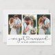 Modern Minimalist Simple, yet Elegant Ink Pen Heart Calligraphy Script We Got Married 3 Photo Wedding Announcement Card