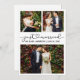 Modern Minimalist Simple, yet Elegant Ink Pen Heart Calligraphy Script Just Married 3 Photo Wedding Announcement Card