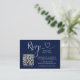 Modern Calligraphy Heart Script Minimalist Simple Wedding RSVP Card with your QR Code. Navy Blue Background.