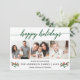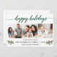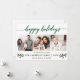 Modern Calligraphy Script Happy Holidays 3 Photo Holiday Card includes Watercolor Holly Berries - Green Script