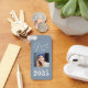 A trendy, modern two sided, sturdy aluminum, Graduate keychain - keyring with your photo on the front. All Personalized, featuring "Grad" in elegant calligraphy ink script with "Class of, The Year, School Name & Your Name" in modern typography. The graduate's photo is artfully accented with a delicate gradient boarder. The text and trim are white with the background in a chic dusty blue color. If you wish, easily edit the background color to your school's primary color. The perfect Graduation gift idea for high school, college and university students.
