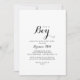This modern calligraphy it's a boy baby shower invitation is perfect for a rustic baby shower or sprinkle. The simple and elegant design features classic and fancy script typography in black and white.