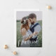 Modern Calligraphy Script Just Married Wedding Photo Announcement features a beautiful calligraphy script overlay on your wedding photo.