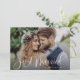 Modern Calligraphy Script Just Married Wedding Photo Announcement features a beautiful calligraphy script overlay on your wedding photo.