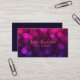 Modern chic business card featuring your name in a trendy calligraphy script against a magenta blue bokeh lights pattern background on the front side and a dark purple colour background back side. It's a versatile card that's suited for any profession like event planner, wedding planner, hair stylist, make artist, consultant, etc.