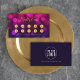 Modern chic loyalty card that you can add your logo featuring a trendy calligraphy script against a magenta blue bokeh lights pattern background on the front side and a dark purple colour background back side. It's a versatile card that's suited for salons, stores, etc.