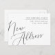Custom-designed moving announcement postcard featuring "new address" whimsical and modern hand calligraphy design. Personalise with family name and address for a modern and stylish moving announcement card.