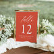 Bring a touch of elegance and warmth to your wedding with our elegant table number cards, featuring beautiful white calligraphy on a rich Verona sunset-orange background. This modern and chic design adds a vibrant pop of colour, making it perfect for weddings in any season, from romantic spring events to cosy autumn celebrations. Personalise each card with your names and wedding date for a unique and meaningful detail that will delight your guests. Combining both style and practicality, these table number cards help organise your seating while adding a stunning decorative element to your wedding day. Add each table number to your cart to order and check out when finished.