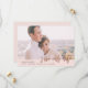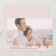 A simple photo save the date with modern calligraphy rose gold overlay and large landscape photo.