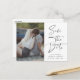 This minimalist save the date postcard features a photo (portrait orientation) and modern calligraphy that reads "Save the Date" in black ink. The front of the postcard includes the couple's names, wedding date, wedding location, and a photo. On the back, you can add wedding details such as the wedding website.