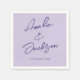 Modern and elegant wedding napkins with simple and stylish purple hand written script on a lilac background. Customise with your unique details.