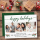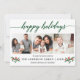 Modern Calligraphy Script Happy Holidays 3 Photo Holiday Card includes Watercolor Holly Berries - Green Script