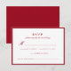 The Modern Calligraphy Red Wedding Response Card is the perfect way to collect your guests' RSVP in style. Featuring elegant, flowing calligraphy and a bold red colour scheme, this response card brings a modern twist to a classic wedding tradition. Designed to complement your red-themed wedding, this card allows your guests to easily reply to your invitation with options for attending or not, along with meal choices or other personalised responses. Perfectly crafted to match the sophistication of your overall wedding stationery collection.
