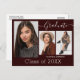Beautiful, 3 photo, graduation announcement postcards with modern calligraphy script in white on deep burgundy. To see more items like this, visit my store here at "www.Zazzle.com/LakeViewCardCo". Thanks