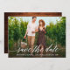 Modern Calligraphy Script Save The Date Engagement Announcement Couple Photo Card - Rustic Country Wood