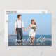 Modern Calligraphy Script Save The Date Engagement Announcement Couple Photo Postcard