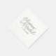 A white and black text modern calligraphy script design on wedding reception napkins. Customise the colour and replace the text using the personalisation option.