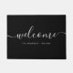 Doormat featuring the word "Welcome" in modern calligraphy script and that you can personalise with your family name all against an editable background colour (click customise to change).