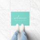 Doormat featuring the word "Welcome" in modern calligraphy script and that you can personalize with your street address all against an editable background color (click customize to change).