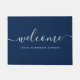 Doormat featuring the word "Welcome" in modern calligraphy script and that you can personalize with your street address all against an editable background color (click customize to change).