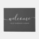 Doormat featuring the word "Welcome" in modern calligraphy script and that you can personalize with your street address all against an editable background color (click customize to change).