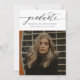 Modern Calligraphy Two Photo White Graduation Announcement features minimal typography and one photo on the front, along with a second photo on the back and optional details.