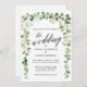 Watercolor Botanical Green Modern Calligraphy Wedding Invitation Card