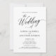 Modern Calligraphy Black and White Wedding Invitation with RSVP via Wedding Website... Our unique black and white wedding invitation features modern black handwriting calligraphy combined with serif typography for a simple classic and elegant wedding invitation. The front of the invitation also includes the wedding website where you can RSVP and view all of the details normally sent in a wedding packet. This modern style wedding invitation was designed to be both elegant and budget conscious... not to mention time-saving. All example text (aside from the graphic calligraphy elements) can be easily revised with your own information on the personalisation template.