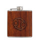 Modern Cancer Zodiac Sign on Mahogany Decor Hip Flask