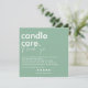 Designed for modern makers and small businesses, it includes tips for safe and optimal candle use, a gentle reminder to keep candles away from children and pets, and a prompt for customer feedback. The elegant layout and minimalist aesthetic make it a perfect insert for packaging or pop-up displays.