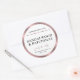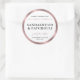 Modern product packaging round labels in elegant white and rose gold - perfect to use as a lid sticker for candle jars, tins or pouches. Featuring pink rose gold foil effect border and white background with modern serif type and space for your brand name. Add your scent names and make elegant stickers for your products. Edit in the design editor and reveal a few bronze gold script text options including 'scented candle', 'soy wax candle' , 'luxury candle' and 'handmade' which you can choose from.