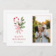 Modern Candy Cane Holly & Bow Photo Holiday Card