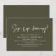 Announce your happily ever after in style with our modern beautiful classy olive green theme design (Sip, sip, hooray!) bridal shower celebration invitation card. With its sophisticated yet playful design, this invitation is sure to set the tone for an unforgettable event. The invitation card features modern minimalist script design, adding a touch of timeless elegance to your celebration. Designed by TeeshaDerrick