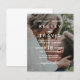 Photo budget wedding invitation with your names in a large font along with your wedding details in a modern format in white over your favourite picture. The words "and" as well as "reception to follow" are in script with swashes for an elegant touch and the template features informal wording for a casual feel. These cheap wedding invitations are printed on sheets of paper for a budget friendly option.