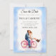 Celebrate love on wheels with this romantic engagement invitation featuring a watercolor illustration of a couple on a pink bicycle. This modern and casual design is perfect for outdoor or country-style engagement parties. Customise the text with your names, date, time, and RSVP info. Ideal for those who want a fresh and heartfelt announcement with a touch of whimsy.