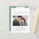 Modern stylish script elegant typography wedding save the date photo postcard. Modern minimal stylish design. Sage green colour can be customised.