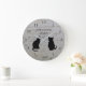 Modern cat silhouettes monogrammed wood pattern Large Clock.