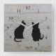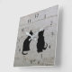 Modern cat silhouettes, pets, sitting on driftwood background clock.