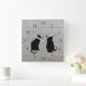 Modern cat silhouettes on rustic wood pattern square wall clock