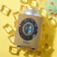 This modern can cooler design features a celestial sun moon on a simple beige background, with your name in handwritten blue text for a look that is simple, stylish and fun. Personalise with the name of your bridesmaids for a chic and trendy gift.