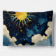 Introducing the Modern Celestial Sun Stars and Blue Clouds Large Accessory Pouch, a chic and versatile addition to your collection that perfectly marries cosmic allure with contemporary design. This accessory pouch features a captivating design predominantly in dark blue, evoking the serene and mysterious beauty of the night sky. At its centre, a large, modern sun shines brightly, creating a striking focal point that exudes warmth and elegance.