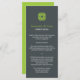 A modern look for a Celtic wedding menu. A charcoal grey background offsets a single Celtic knot. Simple clean typography follows to indicate the menu at an Irish-themed occasion. The reverse is a solid lime green, but can be customised to any colour by clicking the "Customise It" button and selecting a new background colour from the drop down "edit" menu. Add a customised menu underneath. Available with matching products.